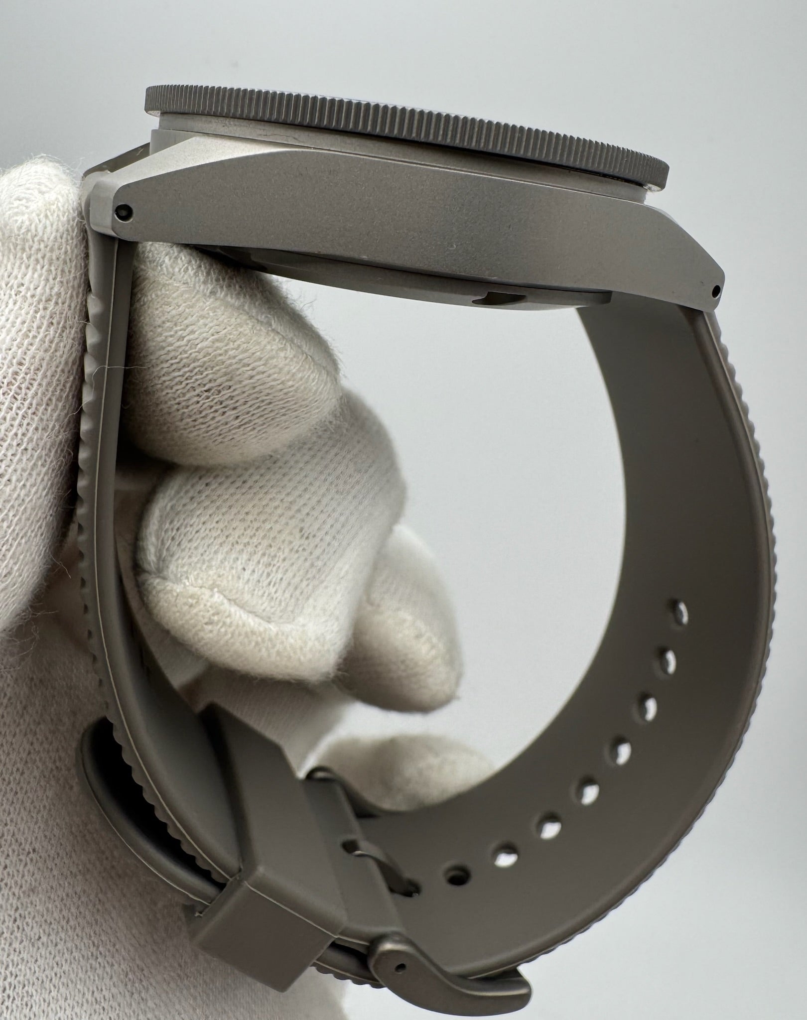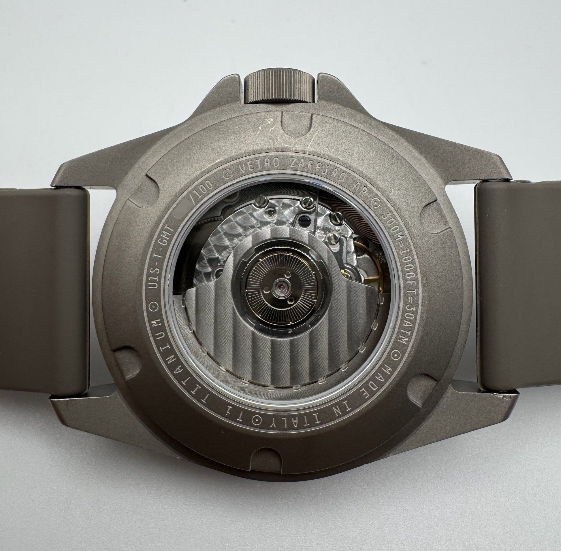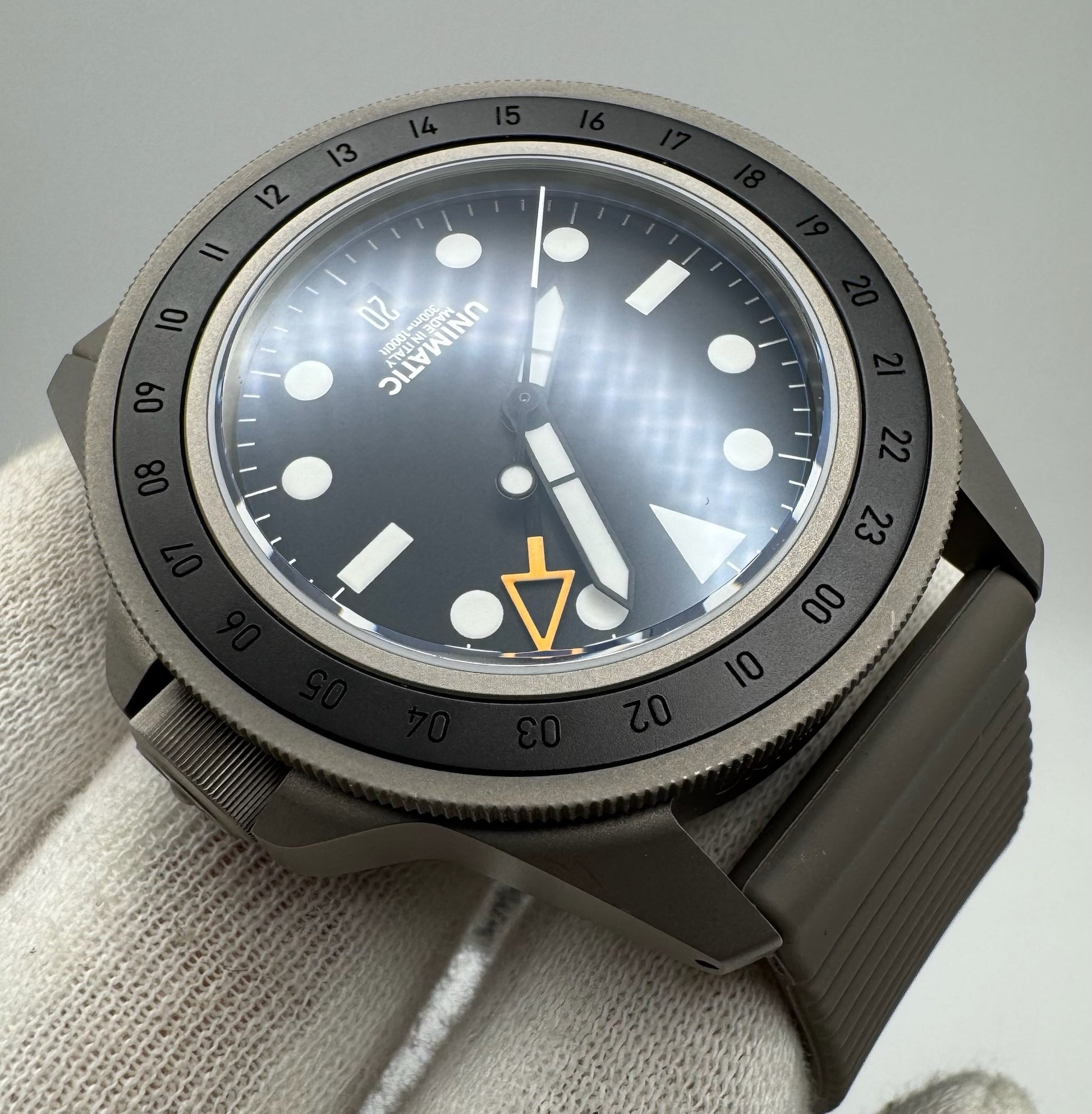 Released in 2022, this reference marks Unimatic’s first titanium GMT model and is powered by a high-grade Swiss ETA movement visible through the open case back—an uncommon feature for the brand. With production capped at just 100 numbered pieces, it stands as one of the hardest modern Unimatic models to source, especially in this condition.